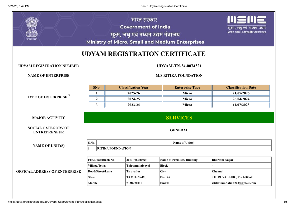 Reg No: UDYAM-24-TN0074321